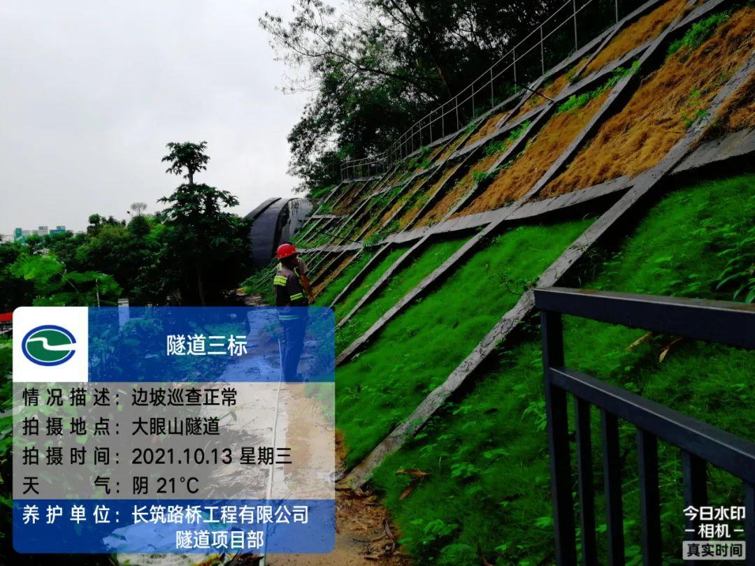 上午,大鹏隧道1标台风过后组织巡查人员对隧道出入口、配电房、截排水沟等重点设施进行巡查,目前隧道内交通顺畅,无异常情况。