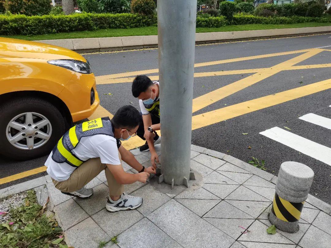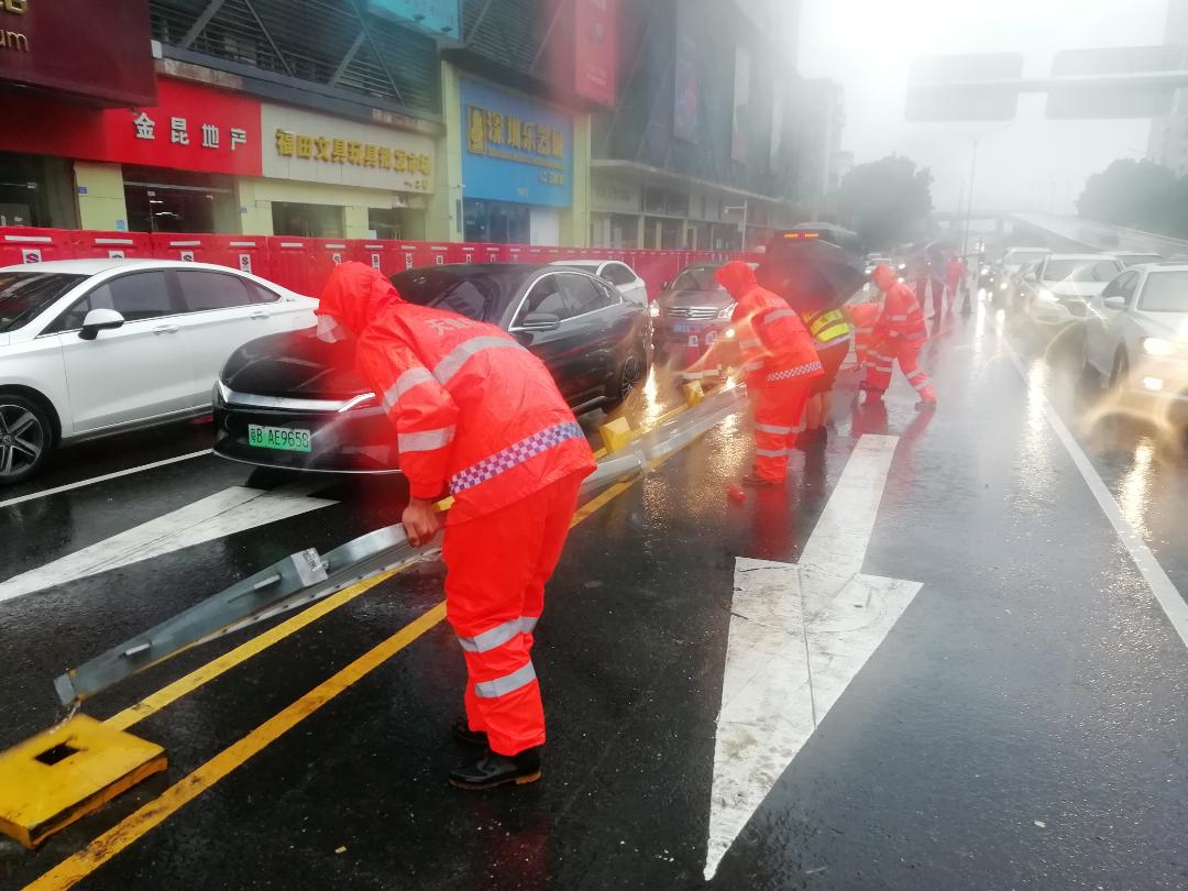 疾风骤雨,道路设施存在被吹翻的风险,影响行人、车辆的安全。道路指示牌+护栏检查修复,也安排上了!
