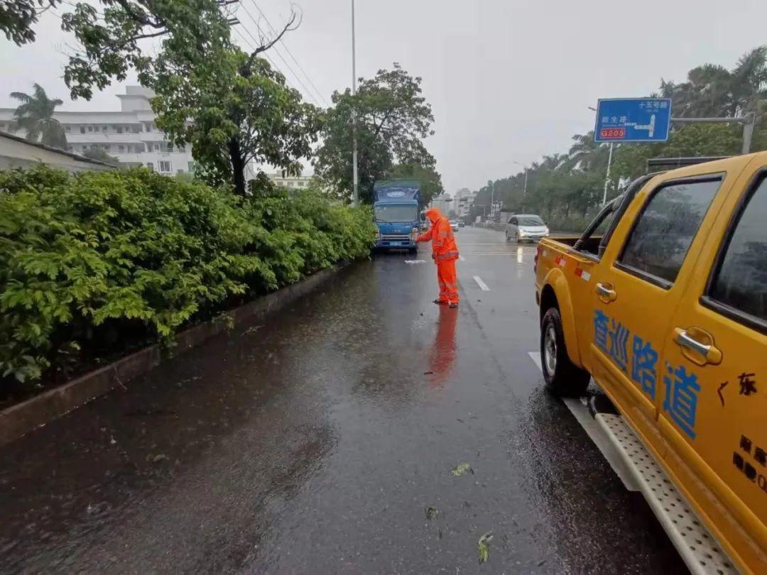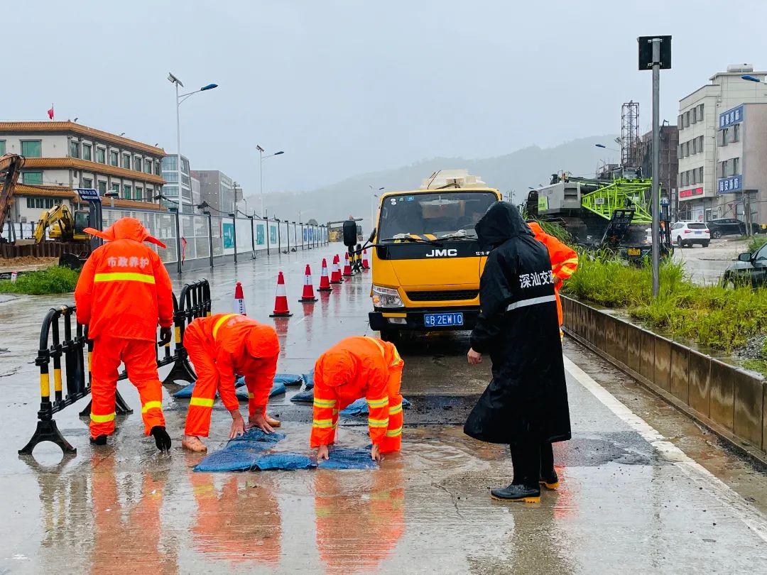疾风暴雨中,深汕管理局会同养护单位对324国道海晖食品门口路面坑槽进行沥青冷补料紧急修复处理,及时消除安全隐患,确保国道安全有序通行。
