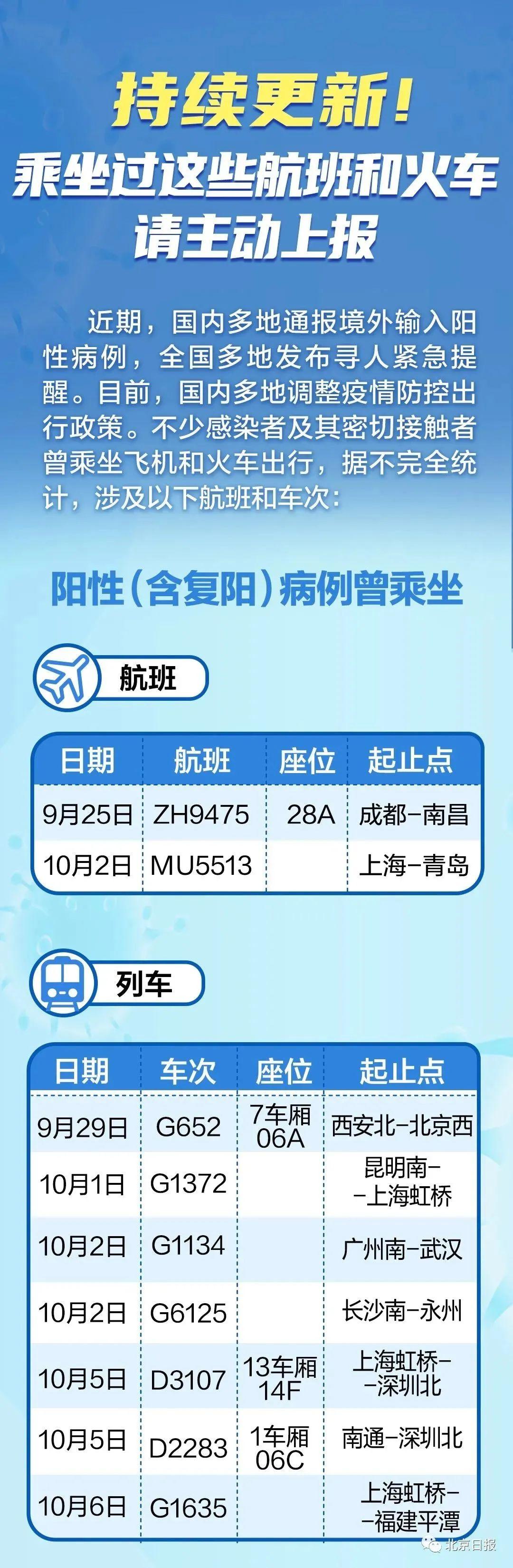 不少感染者及其密切接触者曾乘坐飞机和火车出行,据不完全统计,涉及以下航班和车次: