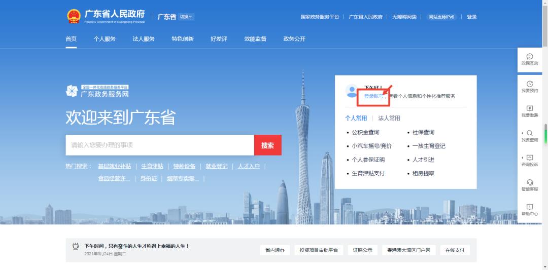 第一步:搜索广东政务服务网(网址:gdzwfw.gov.cn),通过实名认证的方式进行登录。