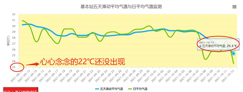 按照气候学标准,当五天滑动平均气温≤22℃时才算入秋,并且以满足条件的五天中首个日平均气温≤22℃那天作为入秋日。