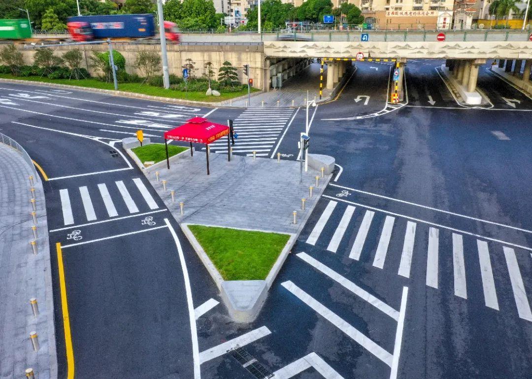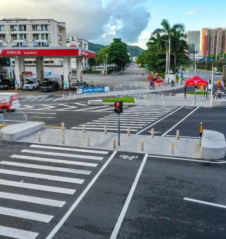 宝安管理局以107国道与福永大道路口处为试点,开展吸能缓冲型二次过街渠化岛建设,大力开展“四新应用”创新,保障市民、安全顺畅通行。