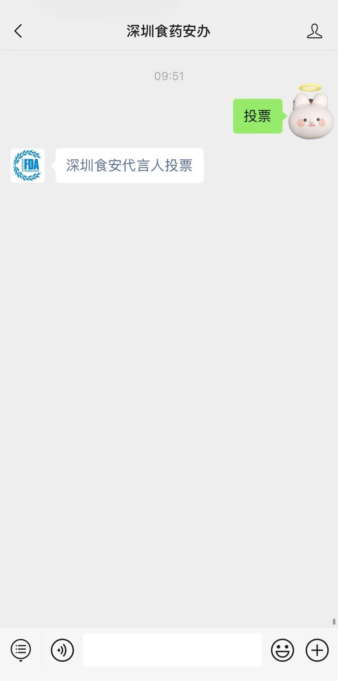 2. 在“深圳食药安办”微信公众号后台回复“投票”。