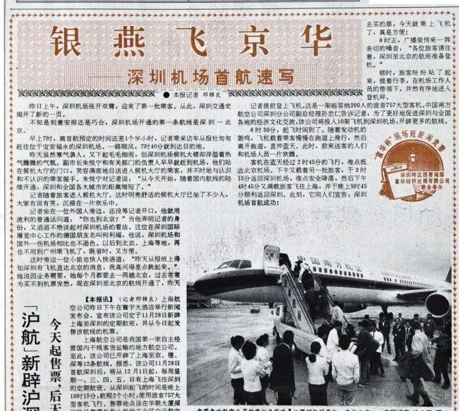 那时的跑道长3400米,至今已陪伴深圳机场服役了整整30年,未出现过质量问题。而它的首条航线则是由南航执飞的“深圳-北京”航线。