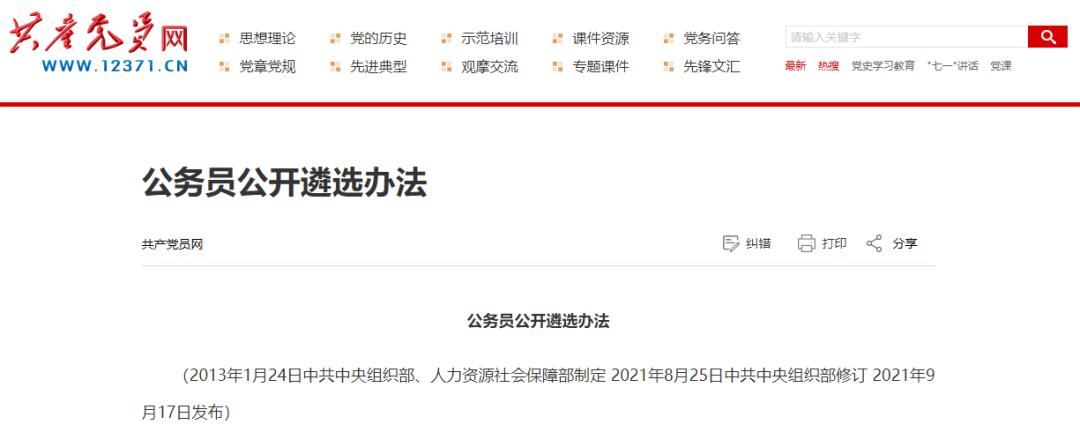 近日,中共中央组织部发布了关于公务员录用考察、录用违规违纪行为处理、公开遴选、初任培训、行政执法类公务员培训等办法。