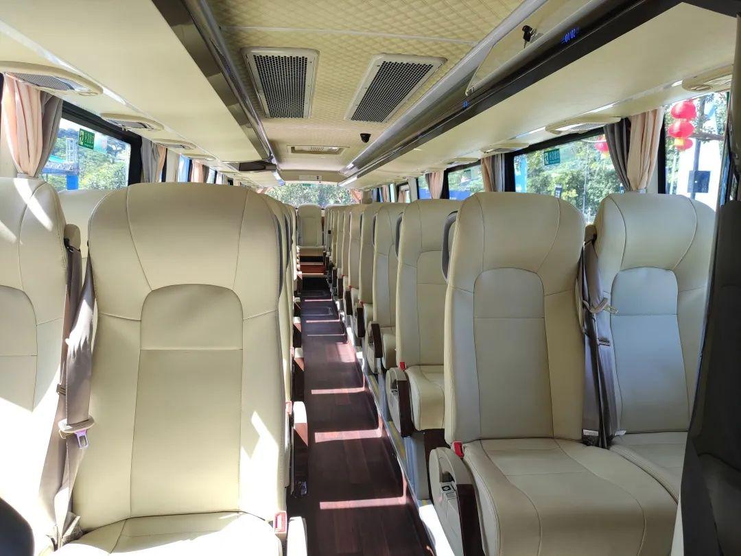 走进氢能公交,内部宽敞明亮,真皮座椅美观舒适,乘坐时安静平稳。