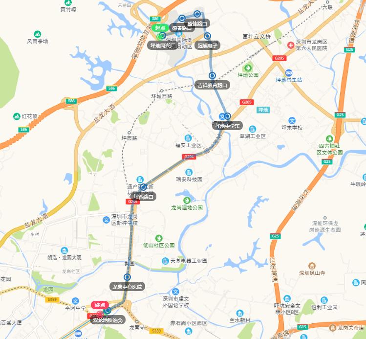 坪地同兴厂、盛景路口、盛佳路口、冠旭电子、吉祥教育路口、坪地中学东、坪西路口、龙岗中心医院、双龙地铁站①