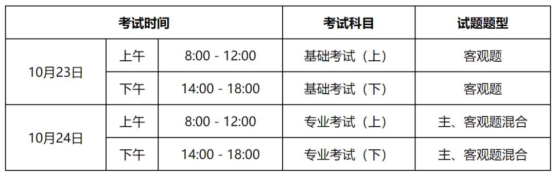 下面是具体考试安排时间