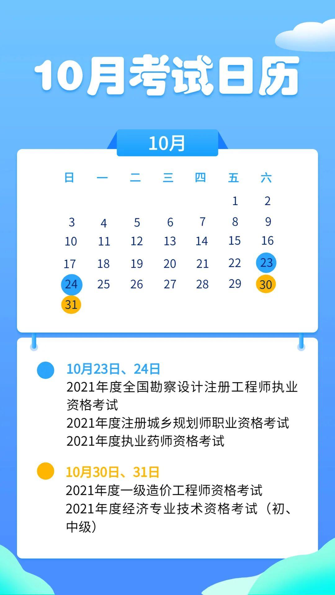 老规矩,先上10月份的考试日历