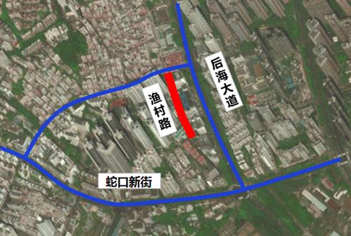渔村路(湾厦牌坊—后海大道段)位于南山区蛇口街道,东邻后海大道,是片区连接后海大道的重要路段,全长约 315 米。