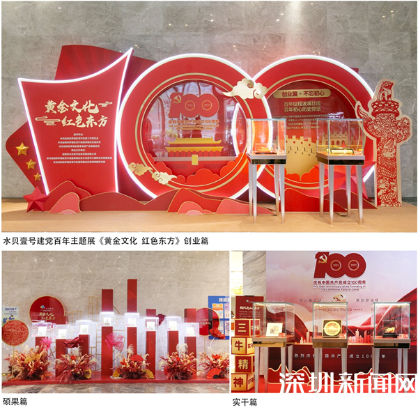 水贝壹号作为多家上市珠宝公司的总部基地,石妍说,作为黄金珠宝行业发展的见证者和实践者,水贝壹号始终坚持以党建为重要抓手,弘扬光荣传统、赓续红色血脉,为热烈庆祝中国共产党成立100周年,回顾中国共产党波澜壮阔的奋斗历程,热情歌颂建党百年的辉煌业绩,从7月1日始至10月31日止为期100天,推出以“黄金文化红色东方”为主题的系列展览活动,展览内容包括“1921年一大南湖红船”涤荡百年文创作品展、“三牛”精神文创作品展、《深圳八景》金箔剪纸艺术展等,献礼建党百年华诞。每天吸引大批慕名而来的党员和市民围观打卡,近5000余人次到场参加,媒体曝光传播10万余次。