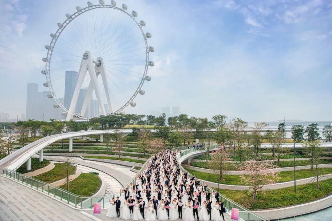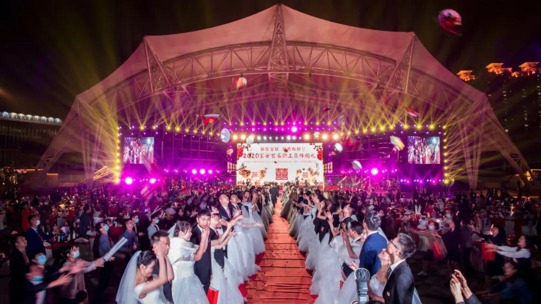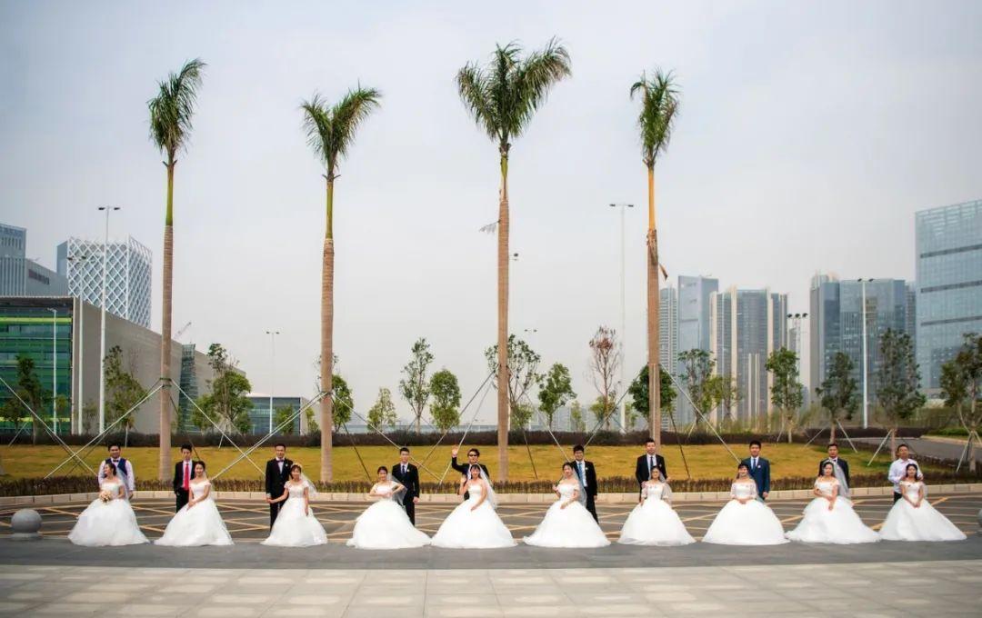这是去年拍摄的一组照片,当时宝安区为一百对新人举办了集体婚礼,这些新人都是基层的一线职工,有医护人员、教师、警察和社区工作者,他们都是因为抗疫或者疫情原因而推迟举办婚礼的,这是一场非常有意义的集体婚礼。《感恩有你》包含了几种“感恩”,有新人之间的互相感恩、有一线职工对宝安区关爱的感恩、更有对全体职工众志成城抗击疫情的感恩。
