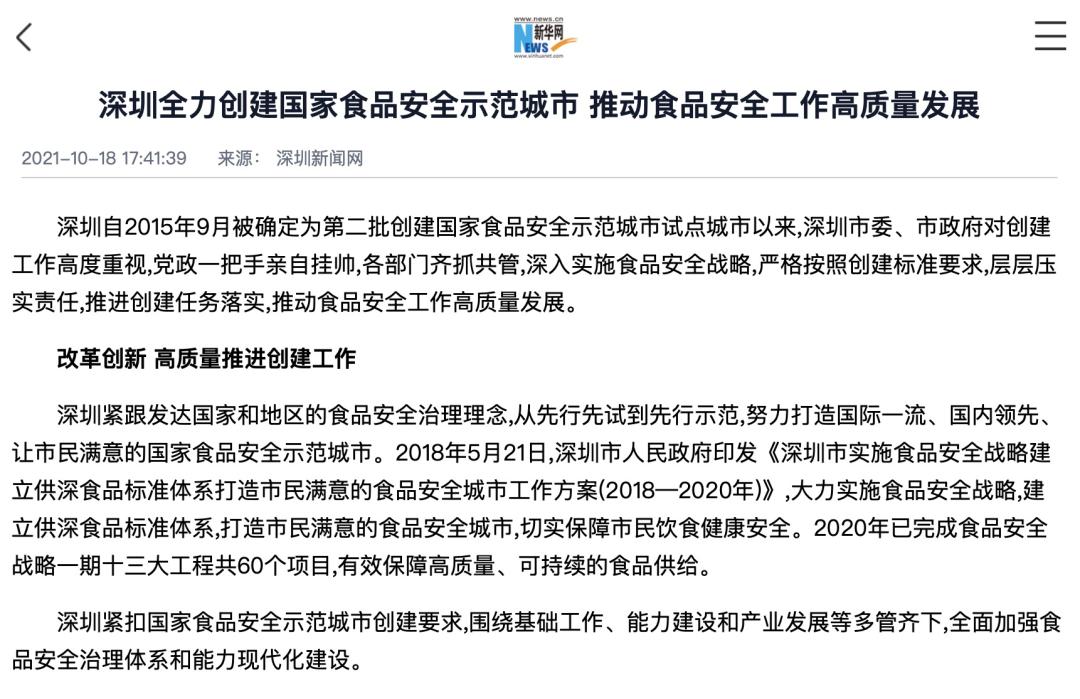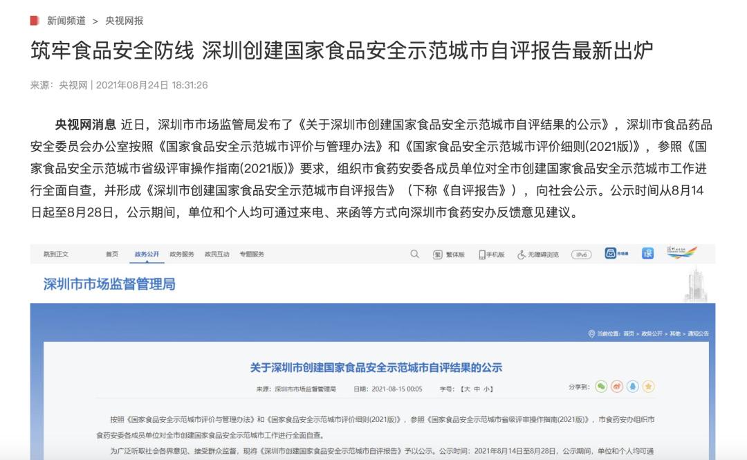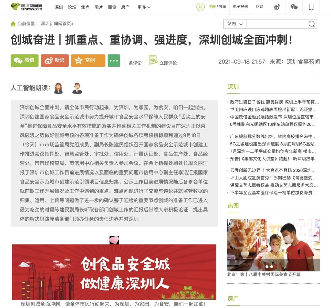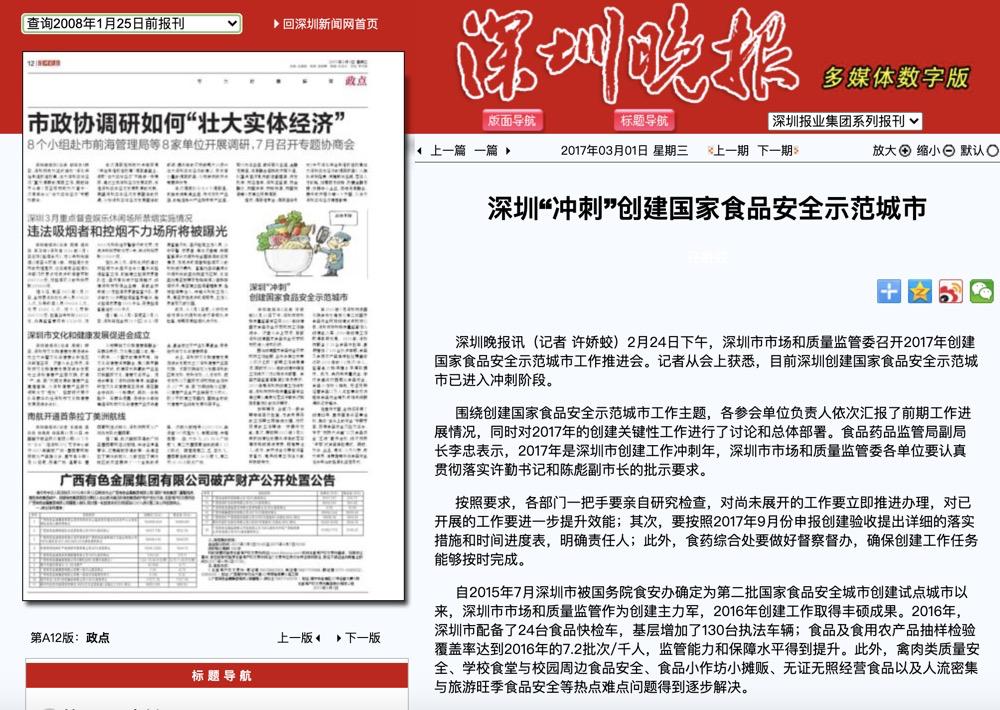 还有中国质量报、晶报等官方权威媒体针对深圳创建国家食品安全示范城市,进行充分报道。