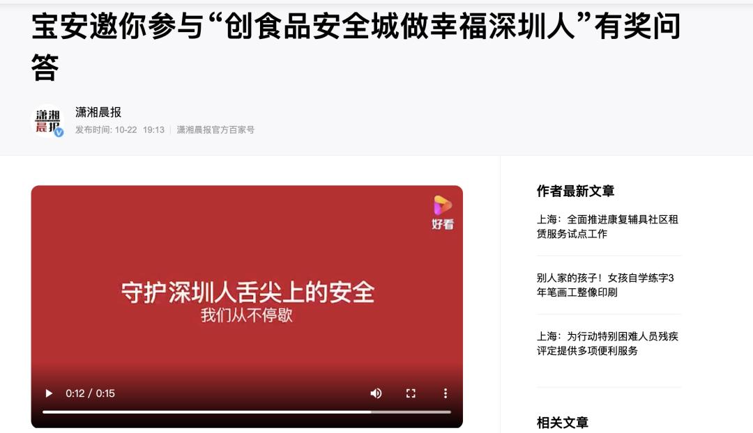 宝安区邀请市民参与“创食品安全城 做幸福深圳人”有奖问答,让更多市民通过趣味问答,了解深圳创城。