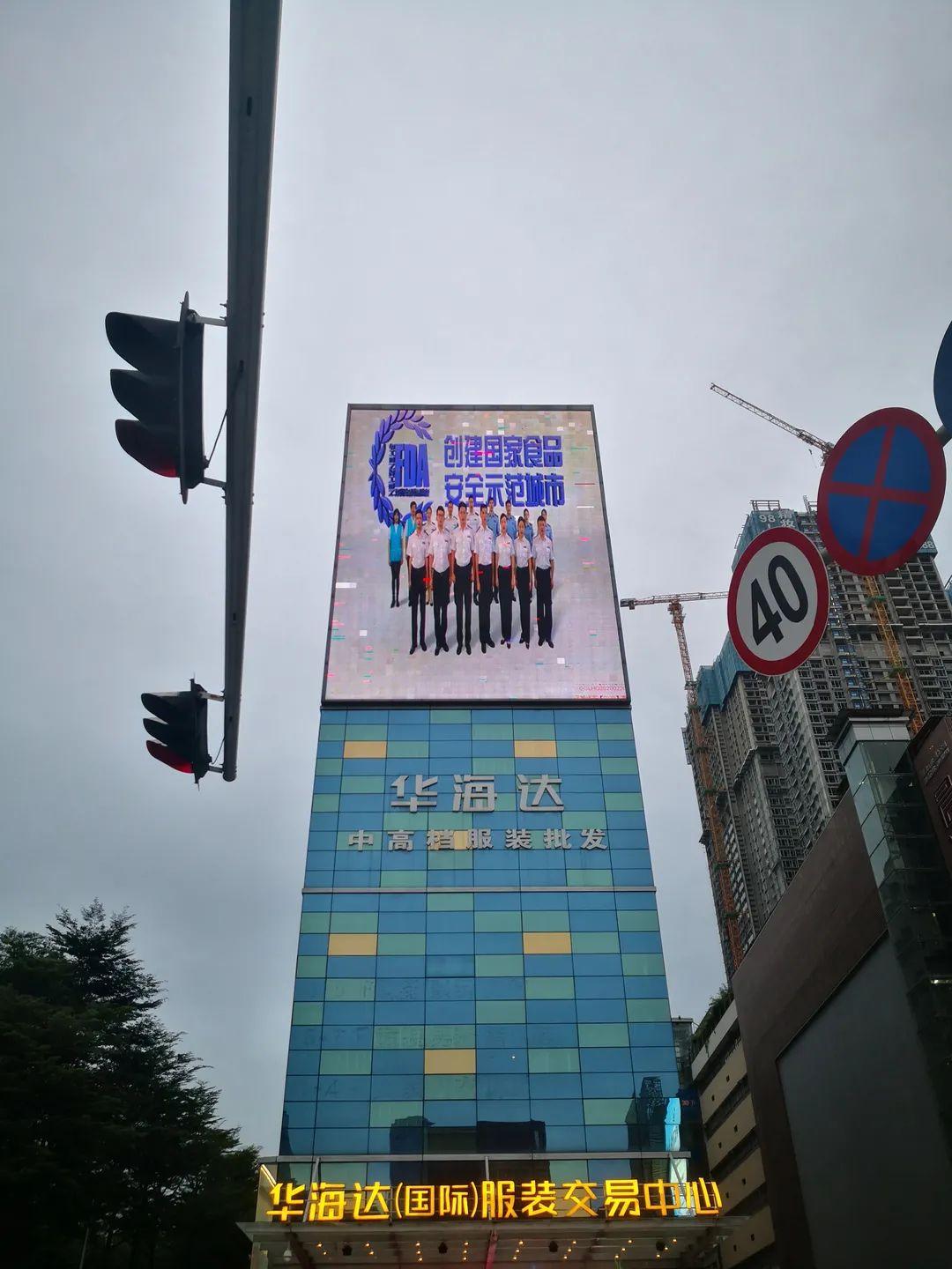 福田区在地标建筑上亮出“深圳创建国家食品安全示范城市”等字眼,那一晚,创城点亮深圳!