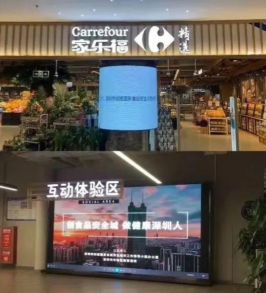 家乐福在超市入口led屏连续一周滚动播放创城宣传视频,向市民展示深圳创城宣传片。