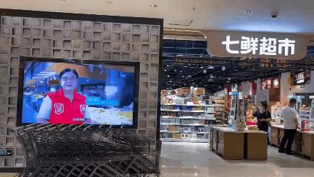 京东旗下七鲜超市通过现场超市展播创城宣传视频,支持深圳创城工作宣传推广。