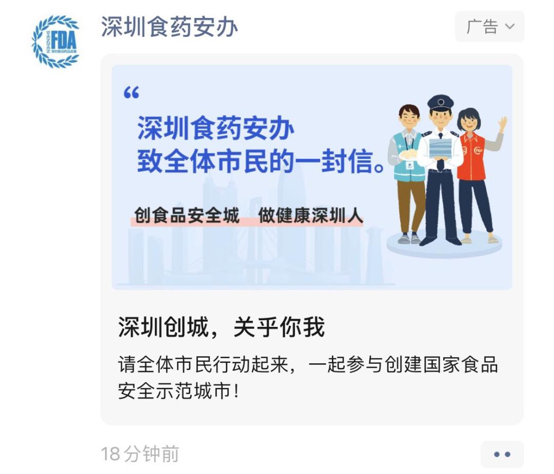 "深圳食药安办"微信公众号