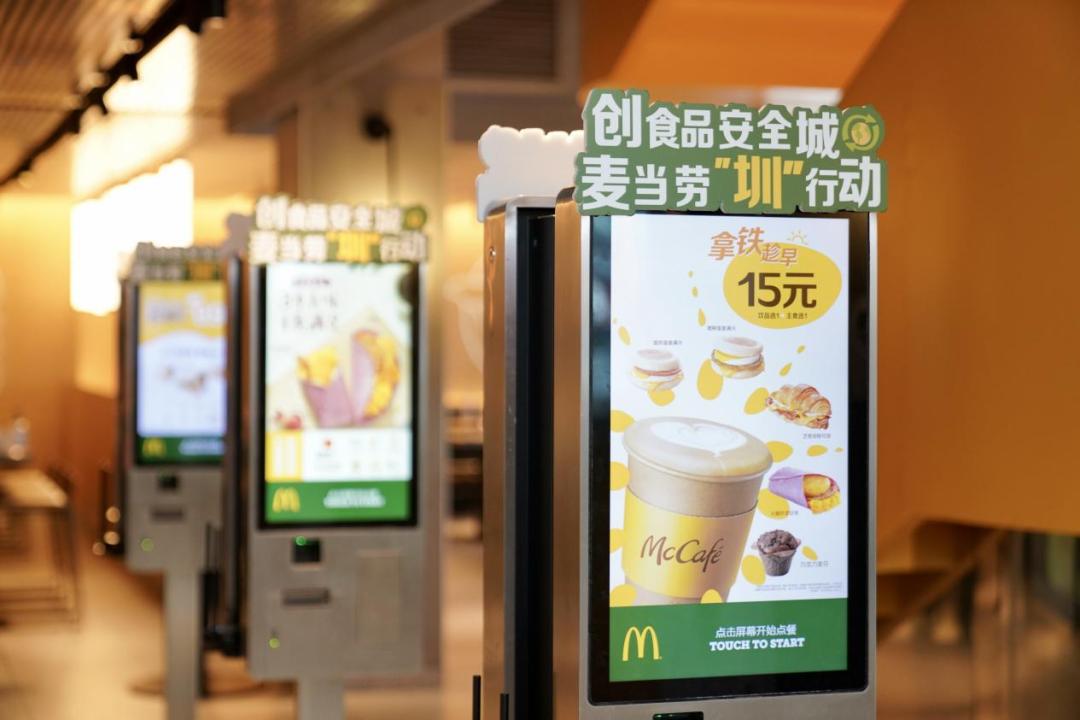 麦当劳通过设立“创城V站”,在深圳市各大门店通过自助点餐机创城牌、桌贴、外卖打包贴纸等宣传形式,助力深圳打造国家食品安全示范城市。