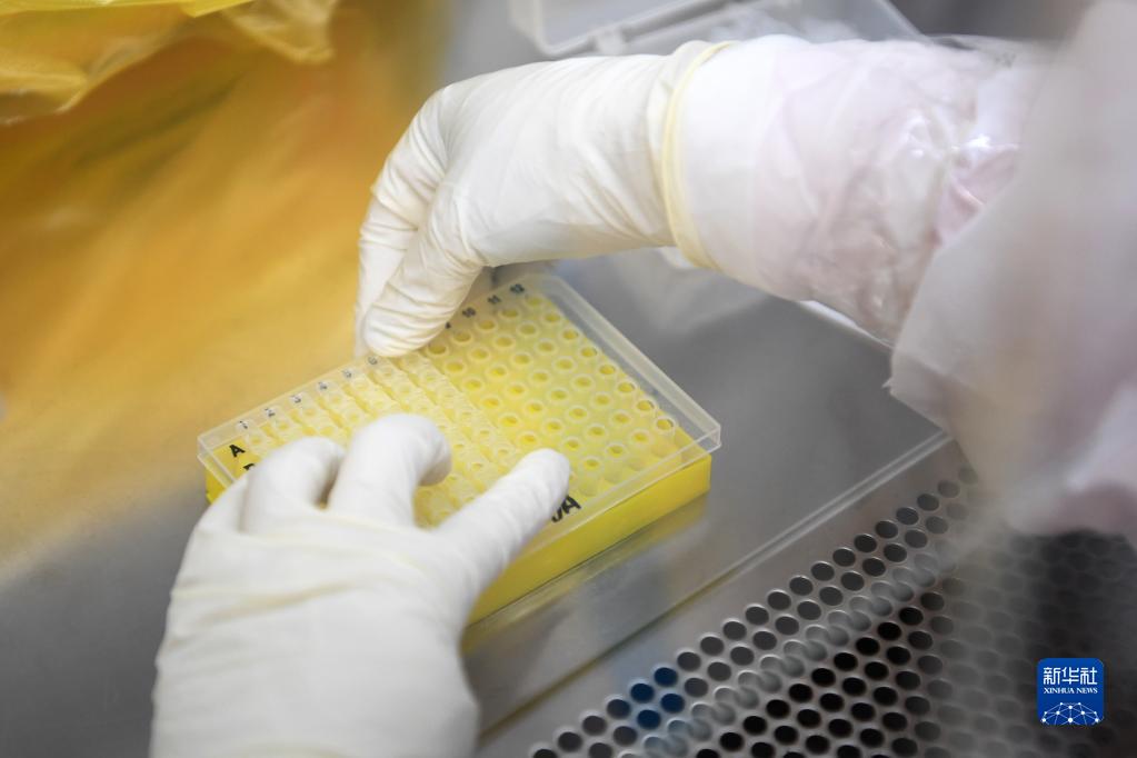 10月24日,“猎鹰号”硬气膜实验室工作人员佟锦媚在扩增分析区作业。