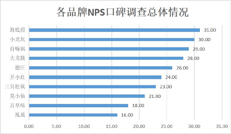 调查发现,消费者对自热火锅产品认可度很高,推荐度均为正值。10个自热火锅品牌的平均NPS净推荐值为24.60,表明消费者推荐意愿良好,对行业整体认可度较高。其中NPS口碑推荐的前三名依次为:海底捞,NPS值为31.00;小龙坎,NPS值为30.00;自嗨锅,NPS值为29.00。