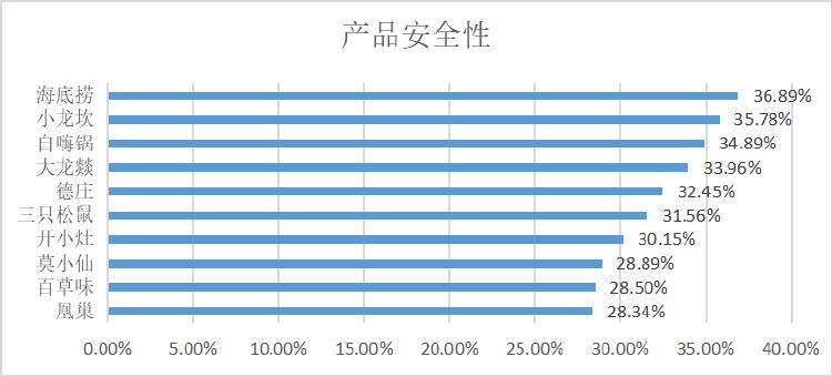 本次调查中,32.14%的消费者在推荐因素中选择“产品安全性”。在该推荐原因中,海底捞自热火锅的消费者选择该推荐原因占比最高,为36.89%;其次是小龙坎,为35.78%,第三是自嗨锅,为34.89%。