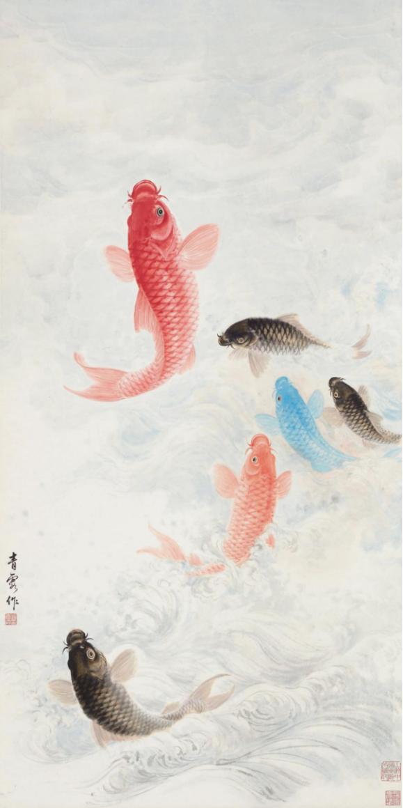 《鱼跃》吴青霞 纸本设色 135 cm×68 cm 1963年 上海中国画院藏