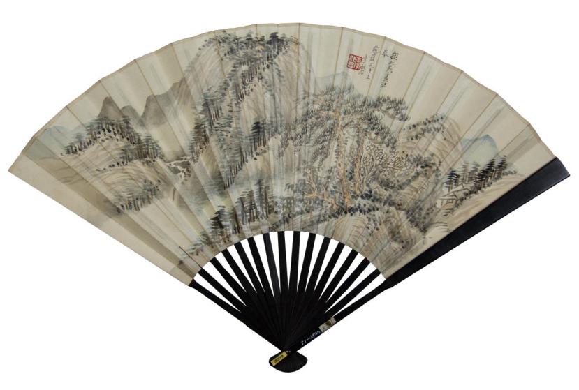 《设色山水成扇》 李秋君 纸本设色18.5 cm×48 cm 浙江省博物馆藏