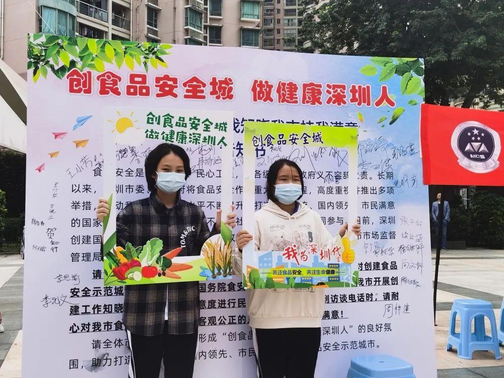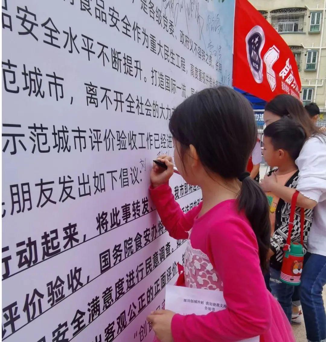总队组织20余名志愿者走进社区,开展以“创食品安全城,做健康深圳人”为主题的宣传活动。食药志愿者在社区张贴宣传海报,向小区居民发放“深圳创城冲刺 我知晓我支持我满意”告知书,同时普及宣传深圳创城工作的重要性,此外,引导居民在背景墙上签名承诺支持创城;号召居民行动起来,为深圳创城助力,本次活动共派发告知书近300份,将近500人现场参与。