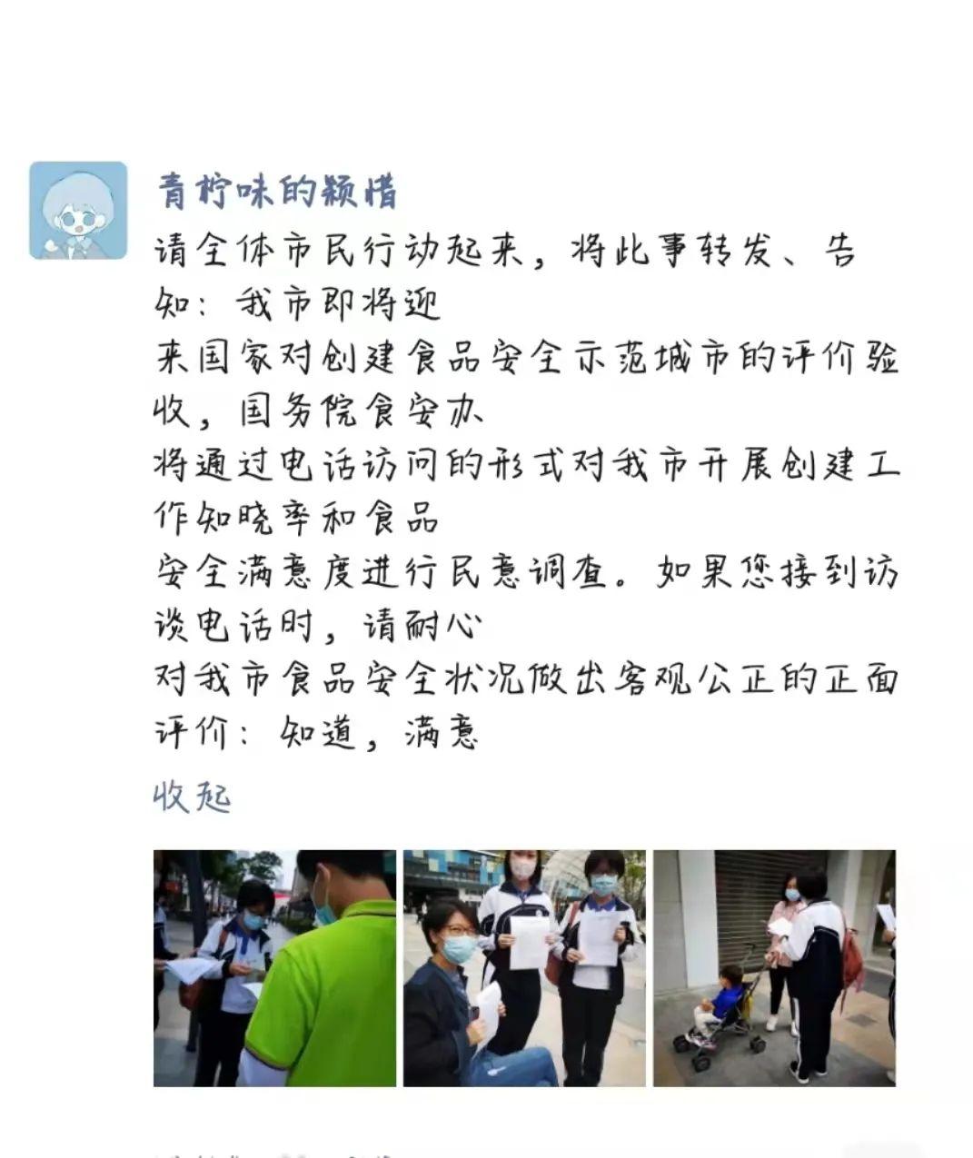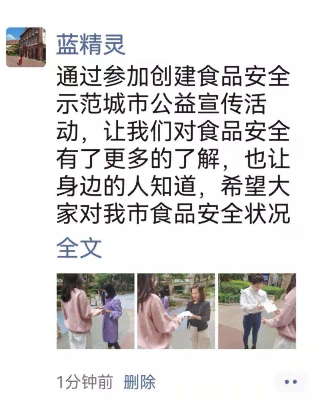 总队组织食药志愿者通过微信群、朋友圈推送“深圳创城冲刺 我知晓我支持我满意”告知书及深圳创城冲刺相关信息,转发、倡议广大市民支持并参与深圳创城活动。