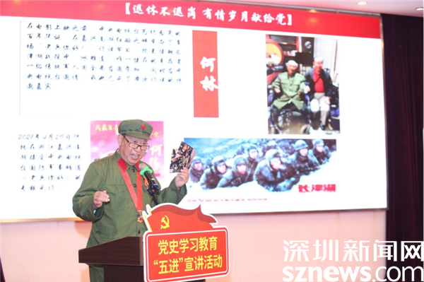 “他是71年前抗美援朝长津湖战役中‘冰雕连’唯一健在的幸存者周全弟,四肢被冻伤后全部截肢,但他学会了生活自理,洗漱、穿衣、吃饭、摇着轮椅四处“散步”,甚至用手机上网看新闻。我们一起参加了中央电视台在嘉兴南湖红船举办的《老兵你好》访谈节目。”74岁高龄的何林说,他是一名深圳拓荒牛代表、罗湖区“红星宣讲队”成员。