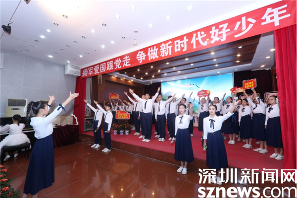 红星宣讲队两位老兵气势恢宏的叙事、真实生动的情节、鲜活感人的故事让同学们的心灵深受震撼。同学们也被革命先烈顽强战斗、英勇无畏的精神深深打动。 活动现场,罗湖区翠园初级中学合唱团献上一首军旅歌曲《我爱祖国的蓝天》,引来了阵阵掌声。学子们唱出了新时代少年的精气神,也表达了“拥军爱国跟党走”的坚定信念。