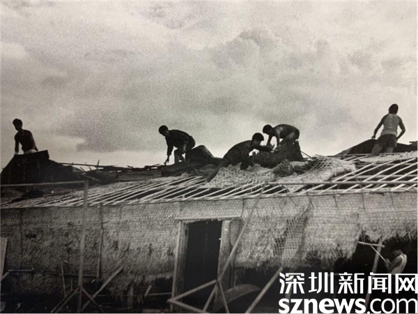 竹叶棚 1982 年部队营房台风过后重拾家园。摄影/周顺斌
