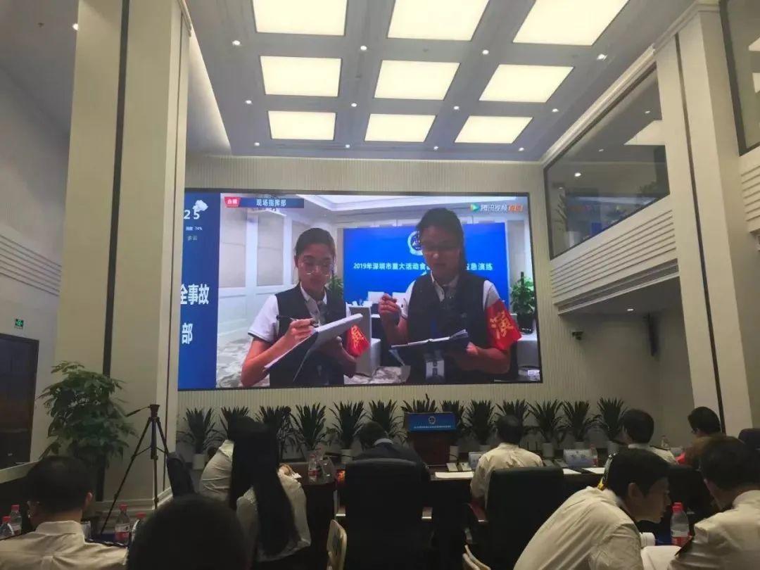 开展应急演练。在全国首次采取视频会议传输系统、移动执法记录仪等信息化手段开展“单盲”应急演练。演练主要模拟了东海朗廷酒店在承担重大活动保障会场任务61人食用了外带早餐后出现不良反应的情景,根据这起食物安全事故开展一系列应急处置演练工作。应急指挥部对整场演练进行指挥统筹,多次与现场指挥部进行连线,全方位了解应急响应、力量行进、医疗救治、调查评估等情况。