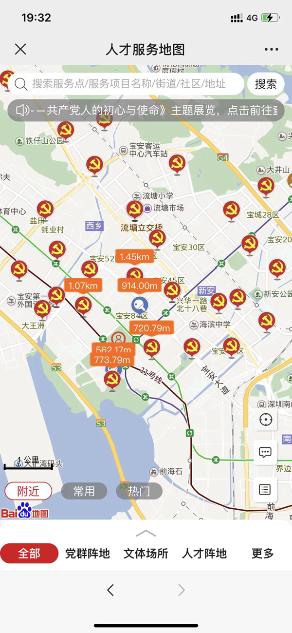 2020年10月30日宝安人才大数据云图正式上线。今年,在一期基础上,宝安打造人才大数据云图2.0版本,重磅推出人才服务地图,整合线上线下人才服务资源,引入人才服务地图搜索引擎,建设基于地理信息系统的人才服务点预约功能,打造线上线下服务点联动体系,吸纳更多服务资源上线入图,推动线下网点优化升级,形成“线下一张网线上一张图”宝安人才大服务格局。