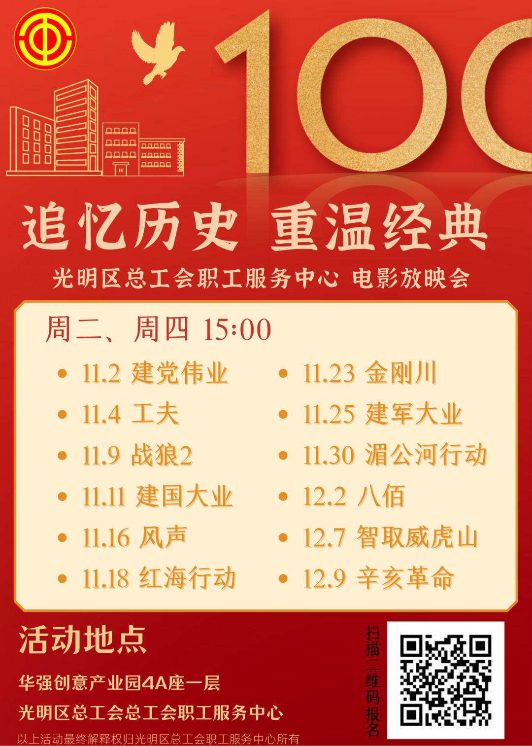 光明区总工会职工服务中心“追忆历史,重温经典”电影放映活动开始报名啦!同时“瑜悦身心 伽倍美丽”瑜伽活动第四期瑜伽课程,也开始报名咯!
