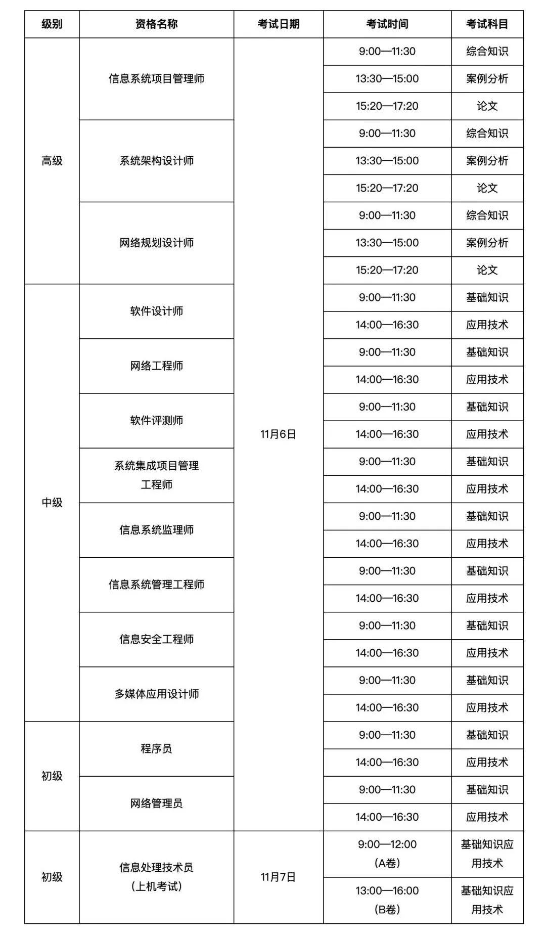 考试时间及科目也一并送上