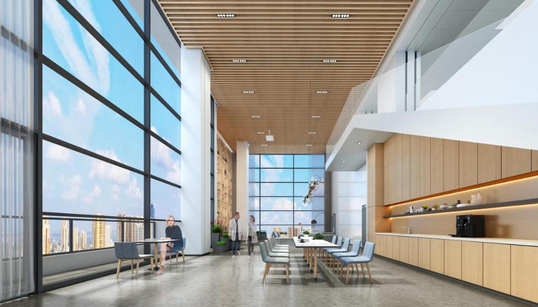 高层科研单元利用西侧两层通高的共享空间设置为活动区,在这里,科研工作者们可以阅读最新科研期刊、举办小型座谈会、分享交流收获,激发科研灵感。