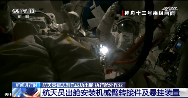 航天科技集团第五研究院空间站系统主管设计师 李学东:神十二的任务重点有舱外服和机械臂的匹配,还有工具的一些验证、舱外工具箱的组装,相当于是我们一个能力的验证。神十三开始,直接装完操作设备之后就奔着工作去了,这个流程肯定是一个简化的过程、而且很快。相当于出舱之后,把更多时间留给工作点进行设备的操作。
