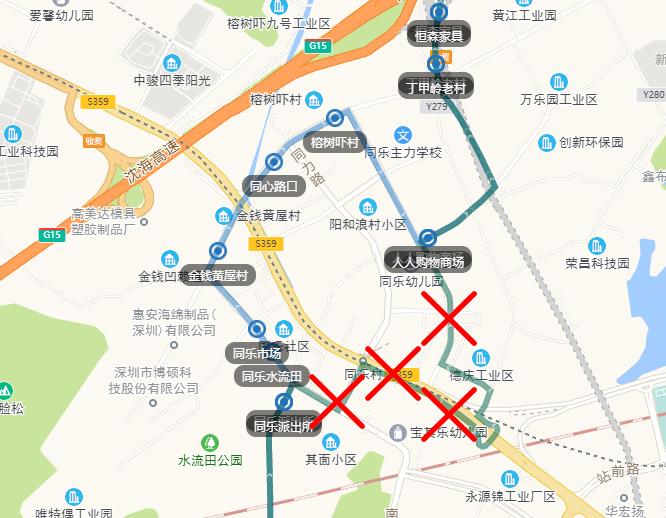 双方向增加“同乐水流田、同乐市场、金钱黄屋村、同心路口、榕树吓村”等5对公交停靠站。