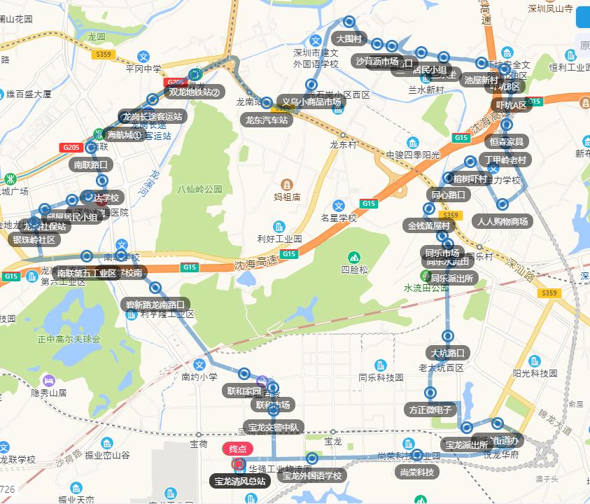 福田高铁站、上海宾馆、兴华宾馆东、深圳书城、门诊部①、黄贝岭地铁站③、罗湖体育馆②、莲塘、葵涌中心、大鹏中心①、布锦村、水头市场、新大集散中心