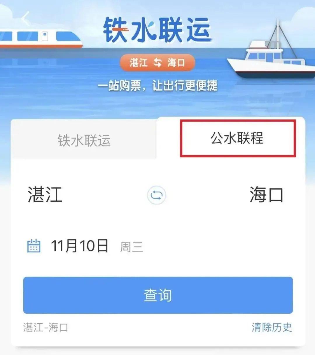 而从湛江西站前往海南的旅客,可选择购买「公水联程」产品~
