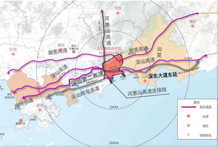 2017年,广汕高铁开工,在深汕合作区设立深汕站。到 2023年 通车后,广州到深汕合作区的通勤时间将压缩到一小时