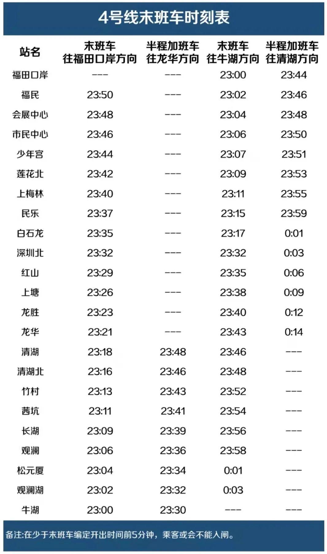 4号线末班车时刻表
