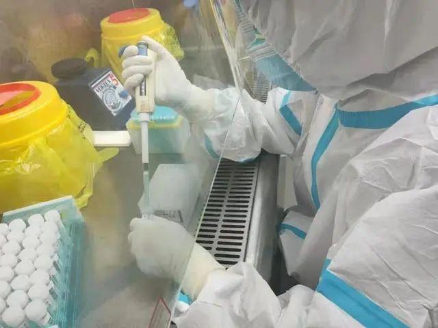 △进口冻品集中监管仓工作人员对进口冻品实施核酸检测