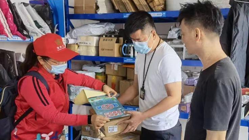 当天下午3点,社区消防安全志愿队员们集合完毕,在社区工作人员的带领下走进了辖区11个快递点,一起给快递包裹“穿新衣”。“现在是‘双十一’快递高峰期,每天我们社区就有4000到5000个快递。”社区安防主任陈建潮告诉记者,社区特别定制了不同尺寸的宣传贴纸,方便粘贴在大大小小的快递盒上,确保每个快递盒都可以“穿新衣”。