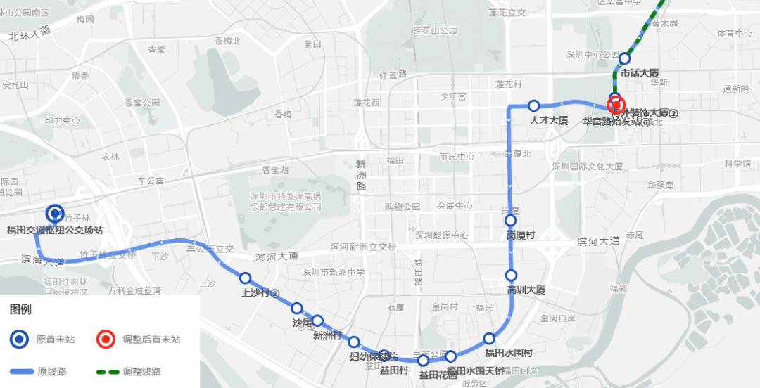 结合客流情况,M137线一端总站由福田交通枢纽公交场站调整为华富路始发站。