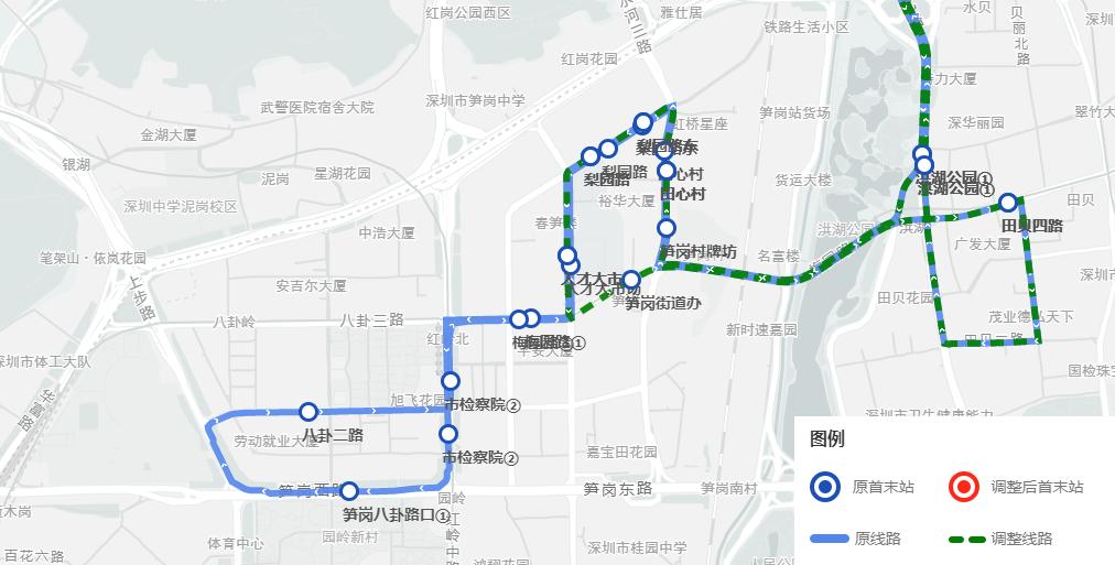 调整之后,222线将完全覆盖79线从世界之窗-清水河段的路径,同时不再进入梅林片区;79线将取消,南山、蛇口段部分可通过204线、369线、M484线等线路替代出行。