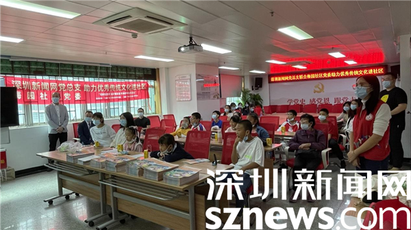 读特客户端·深圳新闻网2021年11月21日讯(记者 郭含笑)为弘扬优秀传统文化,培育爱国主义情操,建设美丽和谐社区,11月21日,深圳市罗湖区清水河街道梅园社区党委与深圳新闻网党总支联合开展了“助力优秀传统文化进社区”共建活动,深圳报业集团深圳新闻网党总支副书记潘汀波、梅园社区党委副书记陈秋珊、社区工作人员以及20余名学生、家长参加了活动。